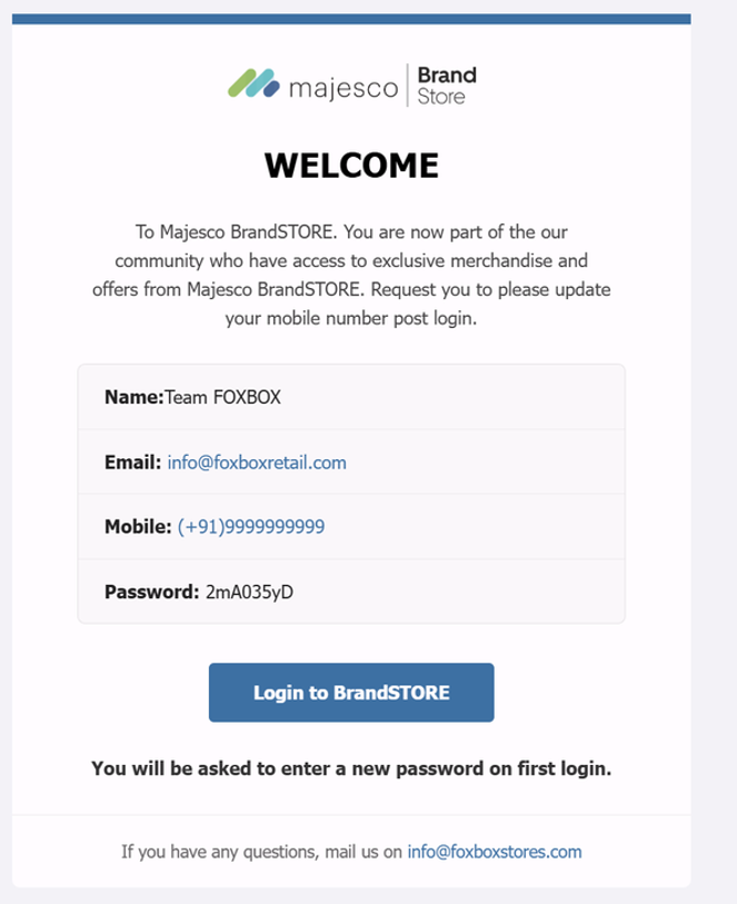 You must have received a Welcome Email along with your login credentials from FOXBOX via info@foxboxstores.com.